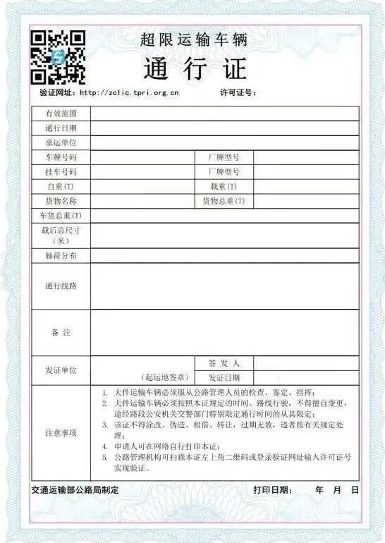 (5)市交通主管部門組織的有關(guān)部門,審驗(yàn)承運(yùn)單位的技術(shù)力量和車輛后,發(fā)放超限通行證。